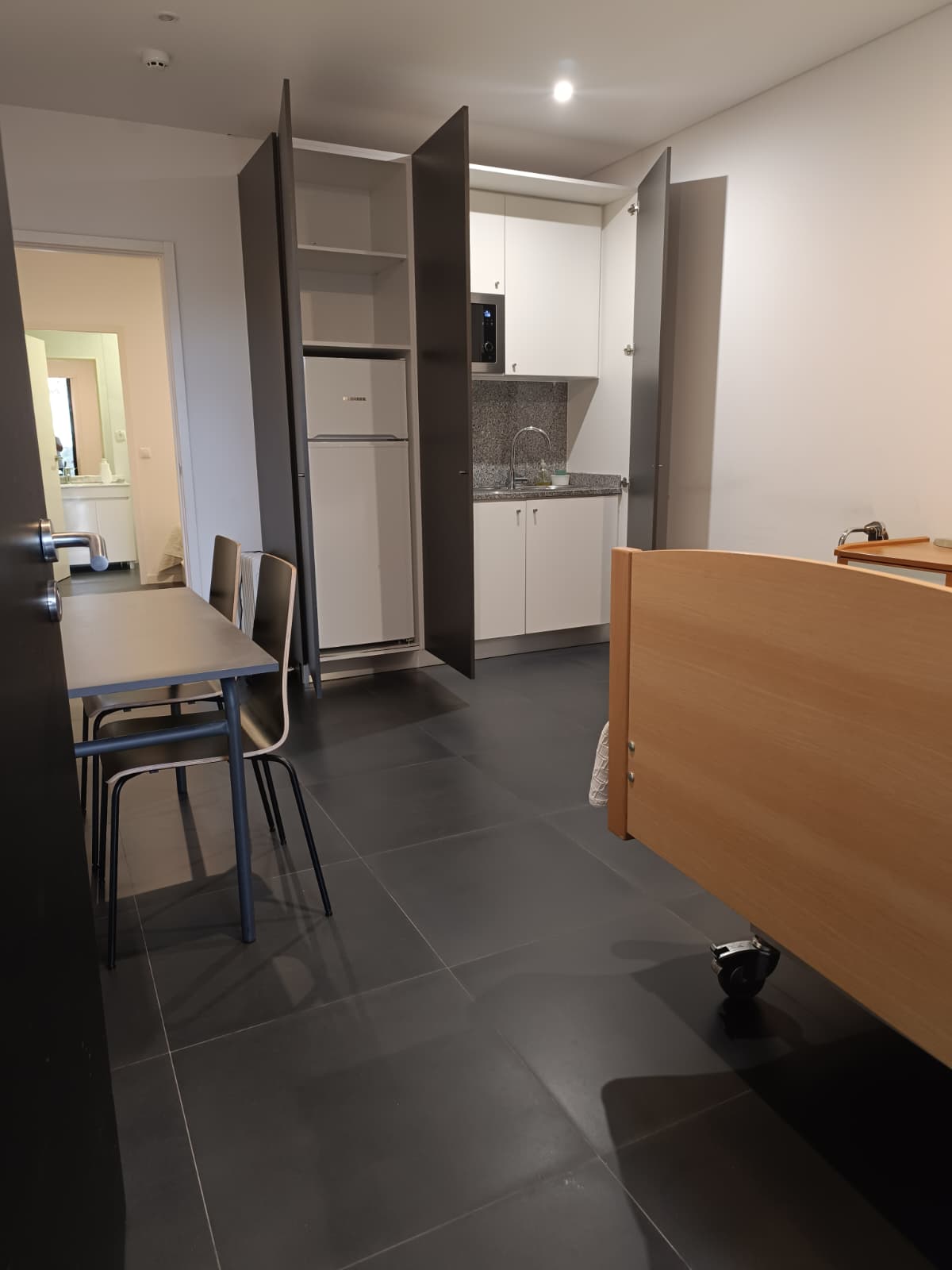 Para maior comodidade dos nossos utentes em contexto de reabilitação intensiva, a Clínica Norte dispõe de um espaço de alojamento composto por cinco estúdios, cada um organizado da seguinte forma: